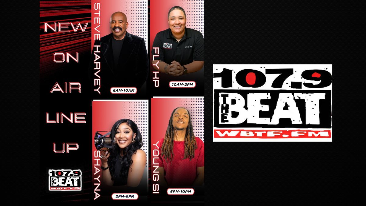 The station’s weekday lineup includes The Steve Harvey Morning Show, Middays with Fly KP, afternoons with Shayna, and evenings with Young Si.