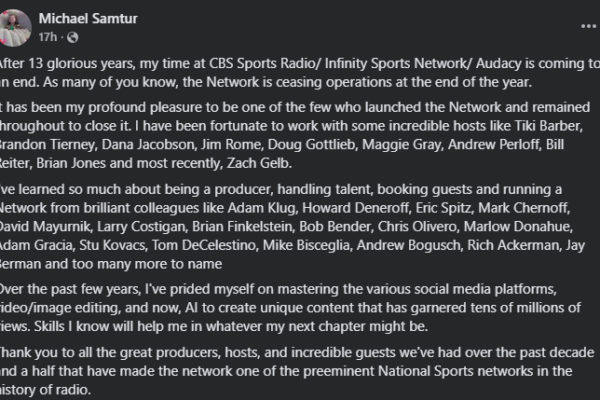 Executive Producer Michael Samtur Announces Exit From Audacy, Infinity Sports Network