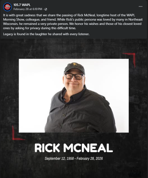 “While Rick’s public persona was loved by many in Northeast Wisconsin, he remained a very private person.”